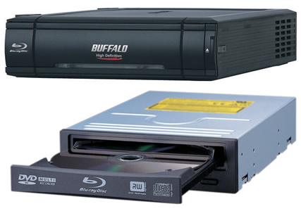 После выпущенных летом этого года Blu-ray рекордеров с максимально возможной на сегодняшний день скоростью записи 8x компания Buffalo решила дополнить модельный ряд высокоскоростных приводов еще двумя новинками. Новые модели, среди которых одна внутренняя и одна внешняя, выйдут на рынок под брендом MediaStation. Внешний привод оснащен интерфейсами USB 2.0 и External SATA, а внутренний может подключаться к ПК с помощью SATA. По производительности они идентичны: поддержка записи BD-R на скорости 8x, BD-RE – 2x, DVD-RAM – 5x, DVD+/-R – 16x, DVD+RW – 8x, DVD-RW – 6x, CD-R – 48x, CD-RW – 24x. Отдельно стоит отметить богатый набор поставляемого в комплекте программного обеспечения: PowerDVD для просмотра видео, PowerDirector для его редактирования, Power2Go для записи DVD дисков, PowerBackup для резервного копирования информации, Pow